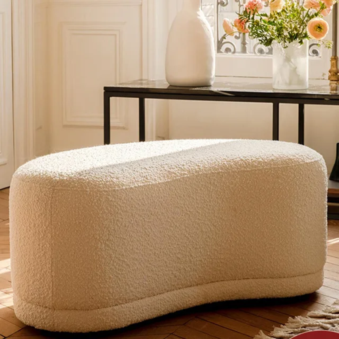 הדום אמורפי מדהים – מוצר משלים למגוון חללים, בד בוקלה בצבע לבן יוקרתי.