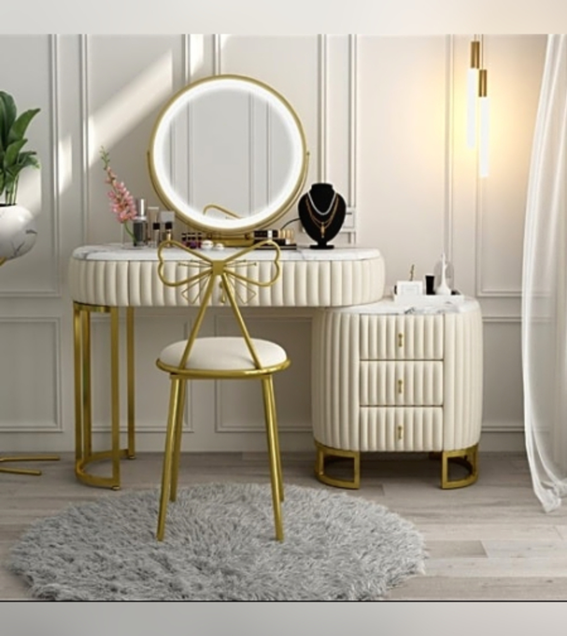 האם את צריכה סט שידת איפור פונקציונלית ואופנתית כדי לארגן את הבגדים שלך ולשפר את עיצוב חדר השינה שלך? אל תחפש עוד! יש לי שידה מהממת למכירה. הכוללת מראה עם תאורה וכסא